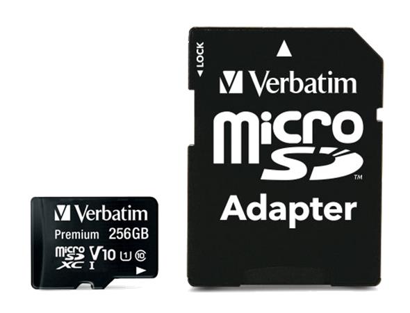 Memóriakártya, microSDXC, 256GB CL10/U1, 90/10 MB/s, adapter, VERBATIM "Premium"