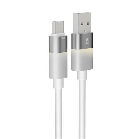 Töltőkábel, USB-A - USB-C, 18W, 1 m, AVAX "CB312 Glowy", fehér